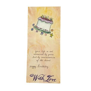 Inside message: "Your life is not measured by years, but by anniversaries of the heart. Happy Birthday"