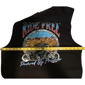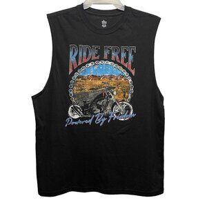 CELEBRATE PATRIOTIC ~ Black sleeveless t-shirt. Patriotic motorcycle graphics. "Ride Free"