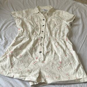 CELEBRITY PINK Romper Women XXLWhite Floral Denim Boiler Suit 1 piece