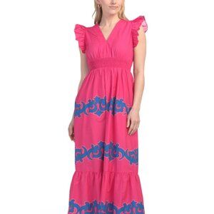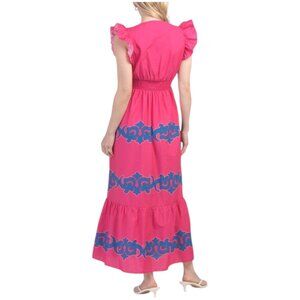 CELINA MOON Flutter Sleeve Border Print Maxi Dress