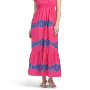 printed design, tiered accents, smocked waist, 2 side pockets, pleat details