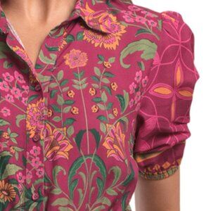 floral pattern, quarter button front, 2 front pockets, tie waist