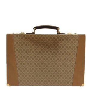 CELINE Attache Case Macadam Canvas Trunk Beige Gold