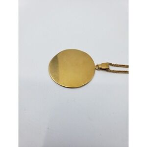 Céline by Phoebe Philo large gold tone disc on adjustable length chain. Engraved with CÉLINE MADE IN PARIS on one side. In Very Good Condition with some minor signs of wear to metal shown in images