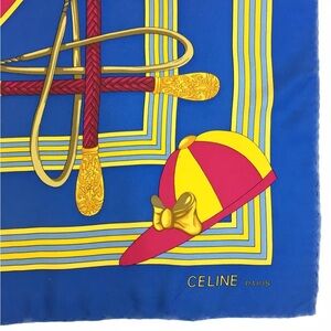 CELINE Blue Macadam Horse Racing Silk Scarf