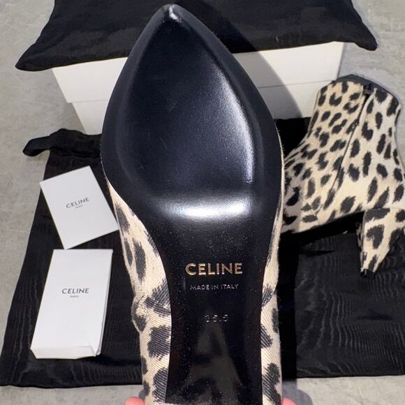 CELINE Western Boots – Beige & Black Leopard Canvas | Size US 5.5 | NEW