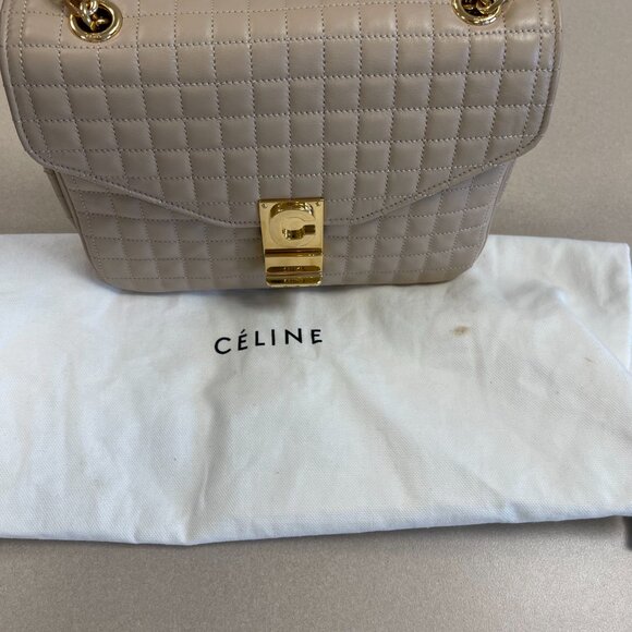 CELINE C Chain Quilted Calfskin Leather Shoulder Bag - Nude - Preowned