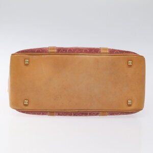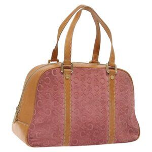 CELINE C Macadam Canvas Hand Bag Suede Pink Gold Auth