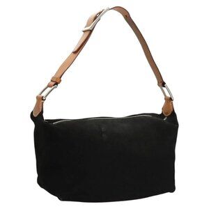 CELINE C Macadam Canvas Shoulder Bag Suede Black Silver Auth 120034