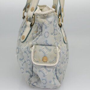 CELINE C Macadam Canvas Tote Bag Light Blue White gold Auth ar13244