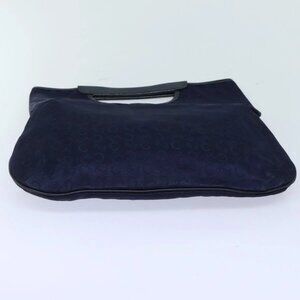 CELINE C Sulky Hand Bag Canvas Leather Navy Auth