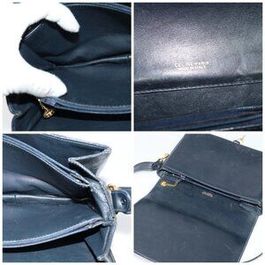 CELINE C Sulky Shoulder Bag Canvas Navy Gold