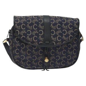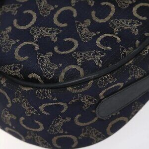CELINE C Sulky Shoulder Bag Canvas Navy Gold Auth