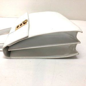 CELINE Chain Lock Leather Tote Bag Hand Bag White