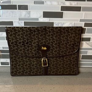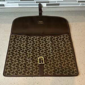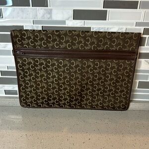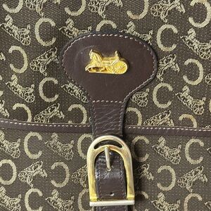 Brown & off white Celine clutch. No holes or stains. In good conditioner. Hardware shows slight tarnishing. Look carefully at the pictures below before purchasing. See photos below for details.