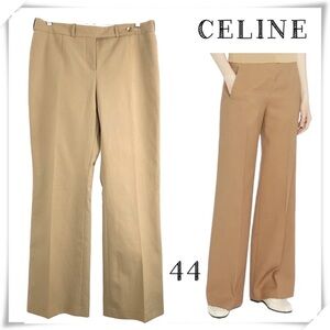 CELINE Cotton Blend Trench Flare Trouser Pants in Khaki Beige Size 12 /44