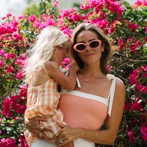 Similar seen on Julia Berolzheimer, hers are just a slightly different color! Super fun, chic sunnies.