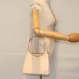 CELINE Hand Bag Leather 2way Cream Gold Auth 91296