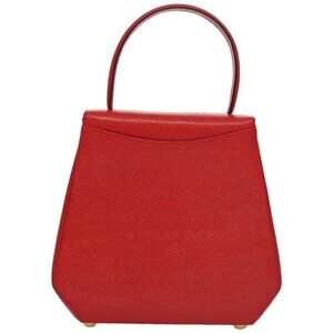 CELINE Hand Bag Leather 2way Red Gold Auth 107984AV