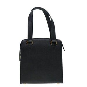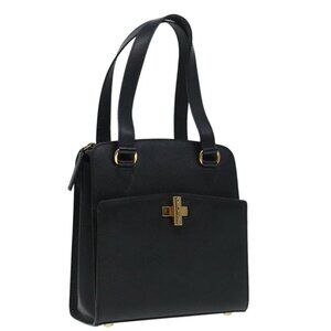 CELINE Hand Bag Leather Black Gold Auth 92770