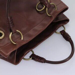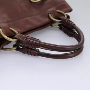 CELINE Hand Bag Leather Brown gold Auth