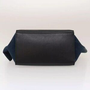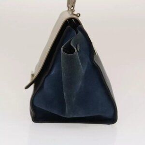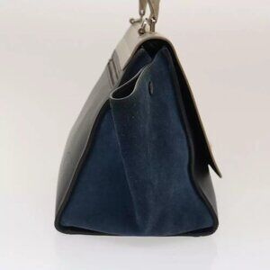 CELINE Hand Bag Leather Suede Gray Navy Auth am2375g