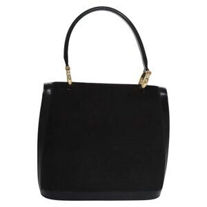 CELINE Hand Bag Suede Black Gold Auth BD112V