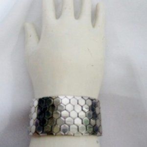 CELINE ITALY SILVER CUFF MESH BRACELET