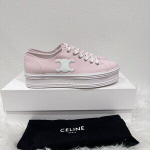 CELINE Jane Triomphe Patch Platform Block Wedge Trainer Low Top Sneakers 39/40