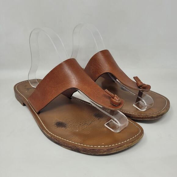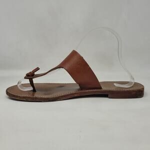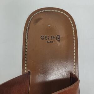 CELINE Lerins Sandals IT41 US11 Brown Leather Thong Knot Flats Slides Slip On