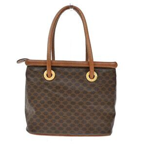 CELINE Logo Circle Macadam Pattern Hand Bag PVC Leather Brown GHW Italy 38KB361