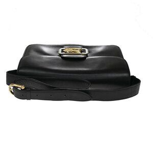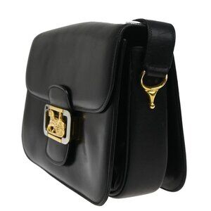 CELINE Logo Horse Carriage Shoulder Bag Leather Black GHW Italy 71KB158
