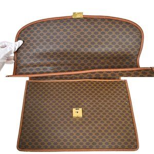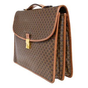 CELINE Logo Macadam Pattern Briefcase Hand Bag PVC Leather Brown Italy