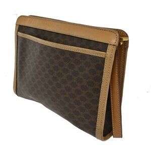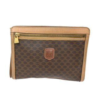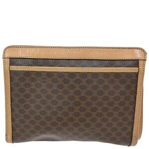 CELINE Logo Macadam Pattern Clutch Pouch Bag PVC Leather Brown GHW Italy 09KB626