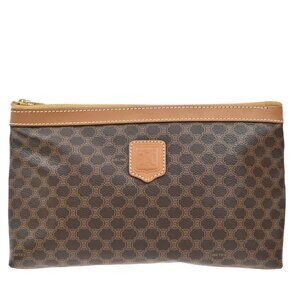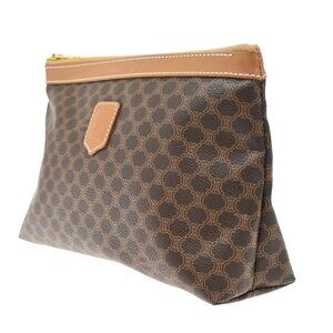 CELINE Logo Macadam Pattern Pouch Bag PVC Leather Brown GHW France 38TA068