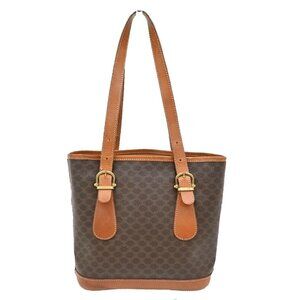 CELINE Logo Macadam Pattern Shoulder Tote Bag PVC Leather Brown Italy