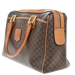 CELINE Logo Macadam Pattern Travel Hand Boston Bag PVC Leather Brown 69KB421