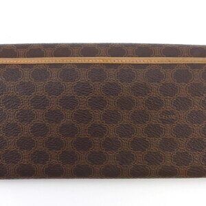 CELINE Long Wallet Macadam Beige PVC ?~ Leather Authentic Used
