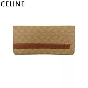 CELINE Long Wallet Macadam Beige PVC x Leather Authentic Used