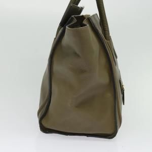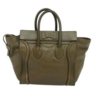 CELINE Luggage Mini Shopper Hand Bag Leather Khaki Gold Auth yk18839