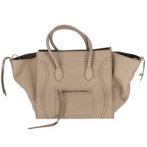 CELINE Luggage Small Square Phantom Tote Bag Beige Leather