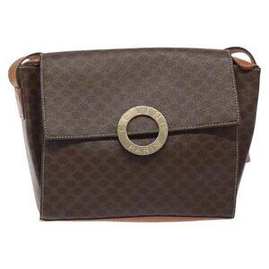 CELINE Macadam Canvas Circle Shoulder Bag PVC Leather Brown Gold Auth 122059