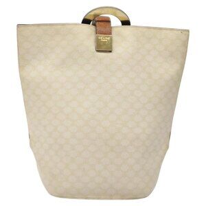 CELINE Macadam Canvas Circle Shoulder Bag PVC Leather White Auth 117579
