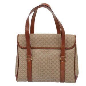 CELINE Macadam Canvas Hand Bag Beige Gold Auth