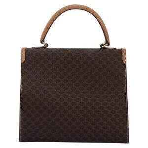 CELINE Macadam Canvas Hand Bag PVC Leather 2way Brown Gold Auth 104480V