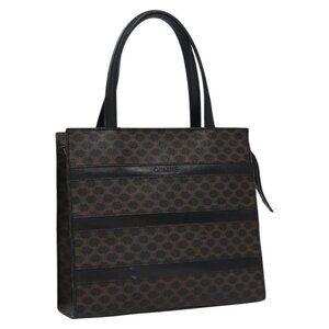 CELINE Macadam Canvas Hand Bag PVC Leather Black Brown Auth bs23202