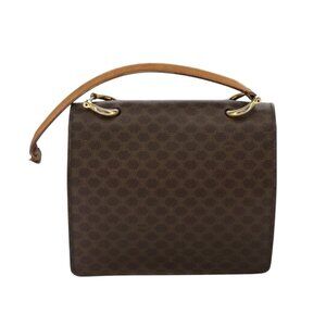 CELINE Macadam Canvas Hand Bag PVC Leather Brown