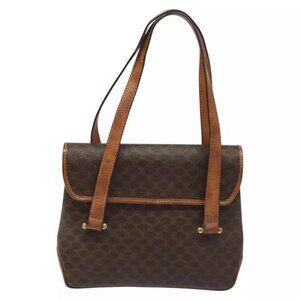 CELINE Macadam Canvas Hand Bag PVC Leather Brown Auth 115387