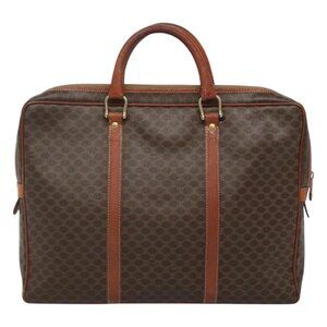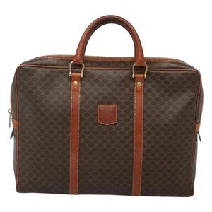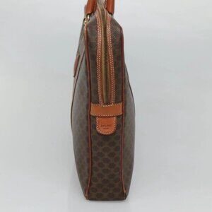CELINE Macadam Canvas Hand Bag PVC Leather Brown Gold