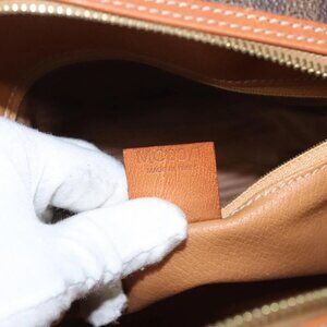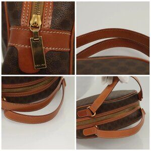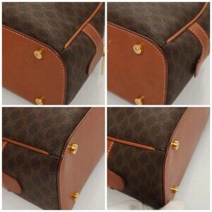 CELINE Macadam Canvas Hand Bag PVC Leather Brown Gold Auth 121455